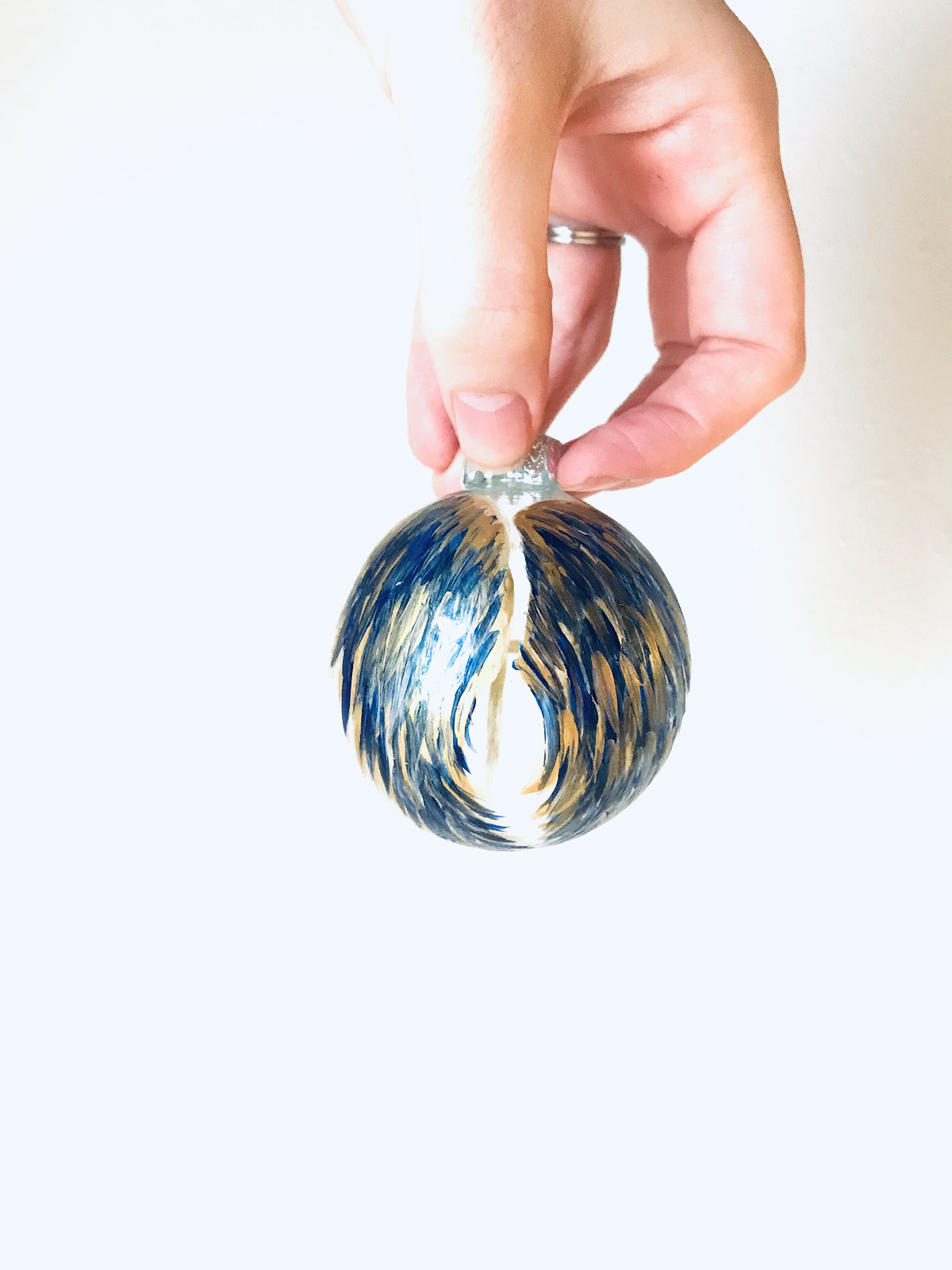 Bring a unique holiday ornament to your tree with this hand painted glass ornament.