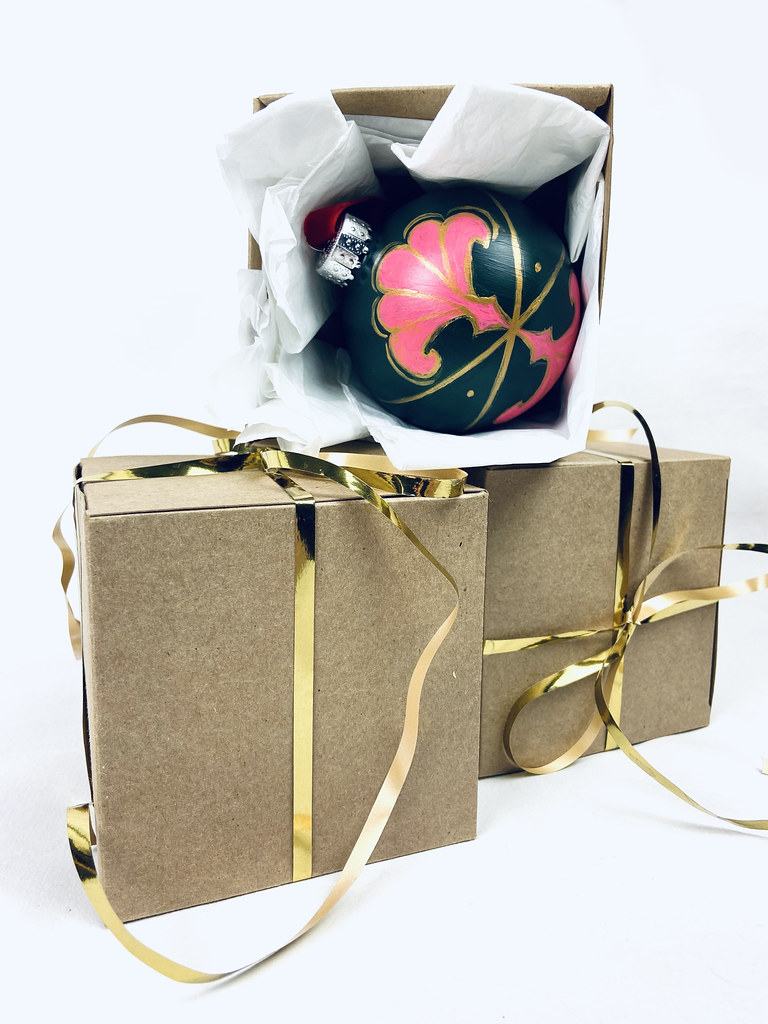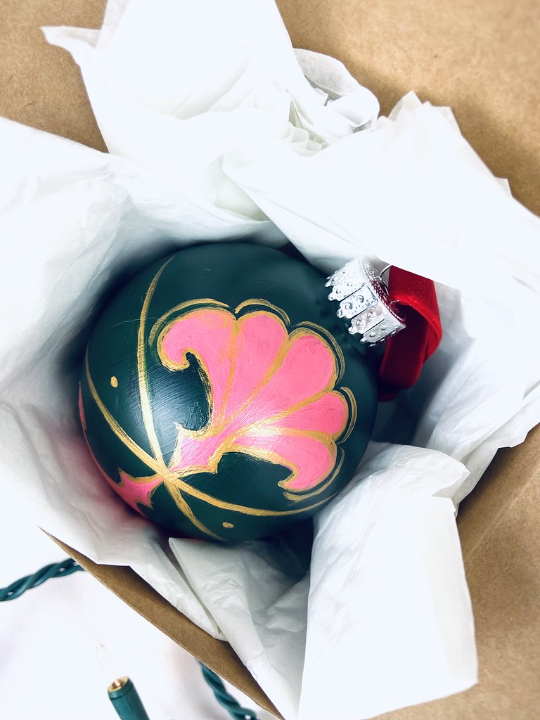Bring a unique holiday ornament to your tree with this hand painted glass ornament.