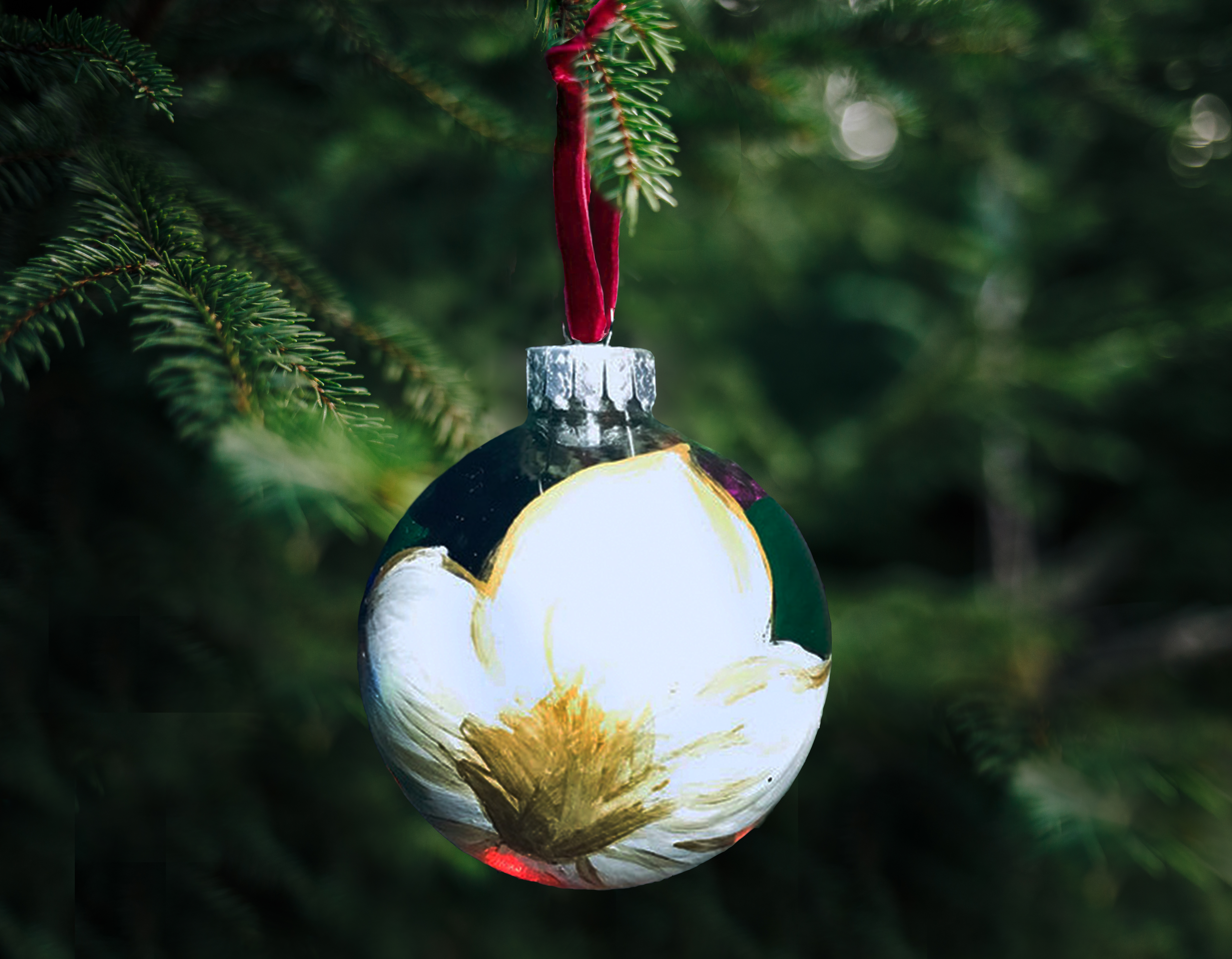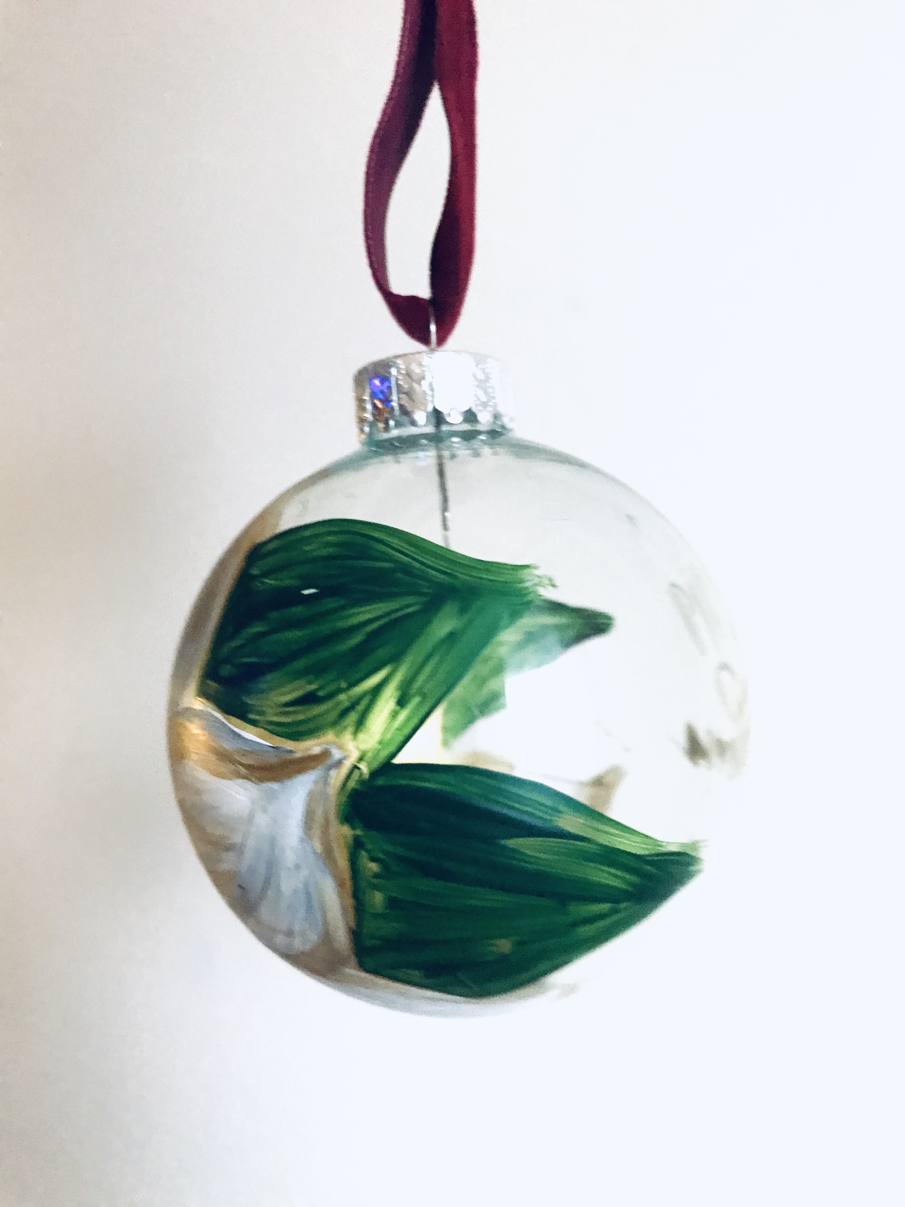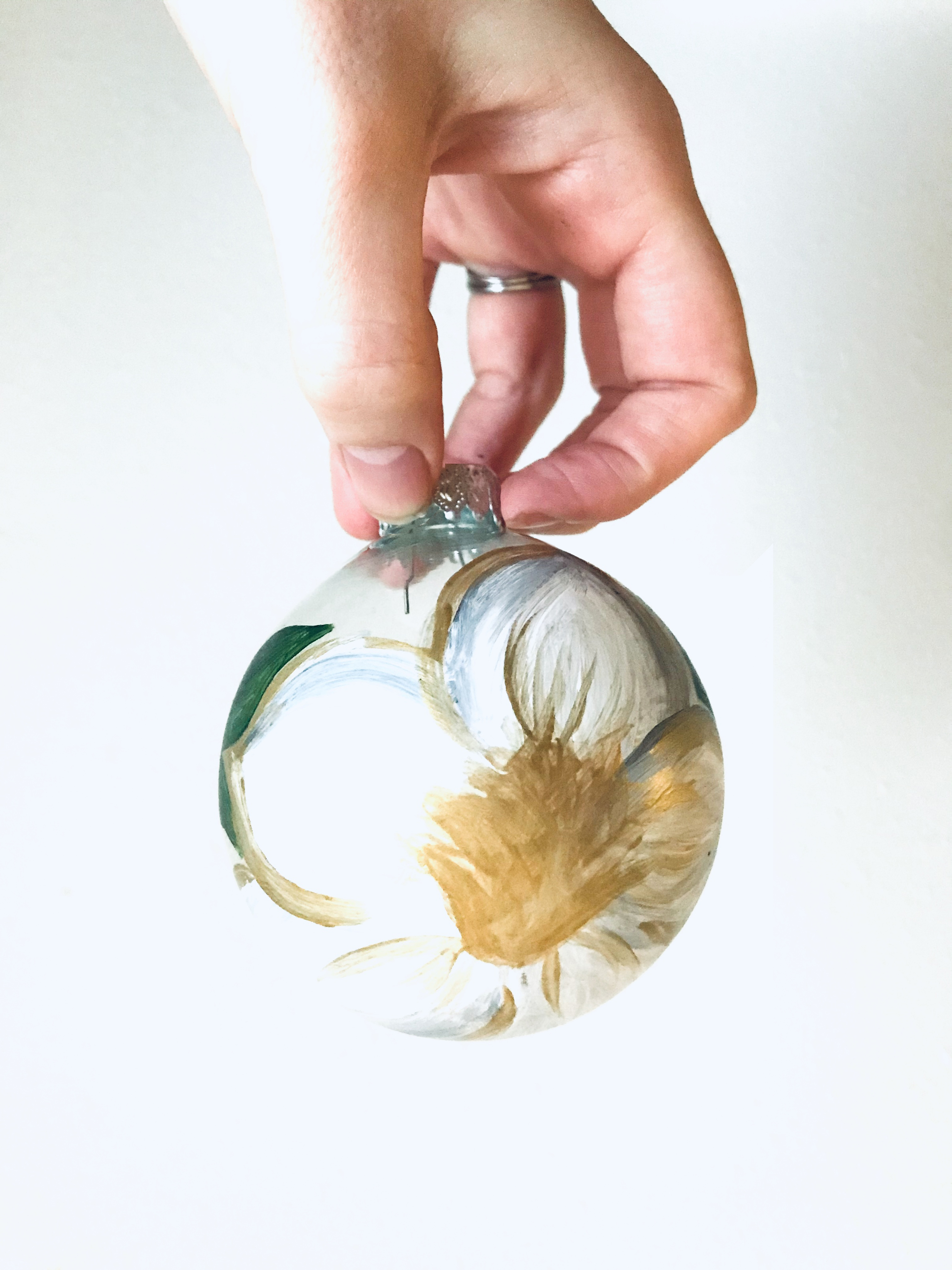 Bring a unique holiday ornament to your tree with this hand painted glass ornament.