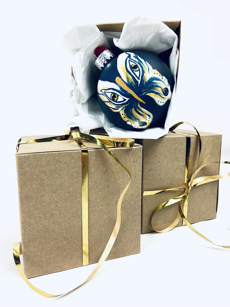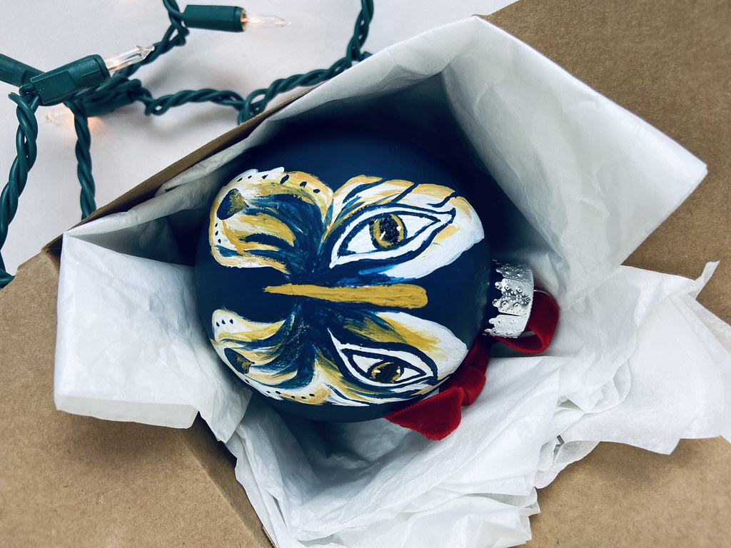 Bring a unique holiday ornament to your tree with this hand painted glass ornament.