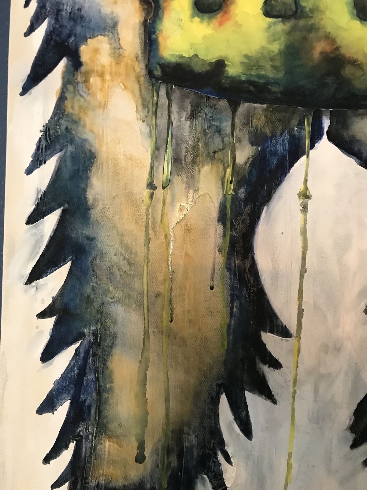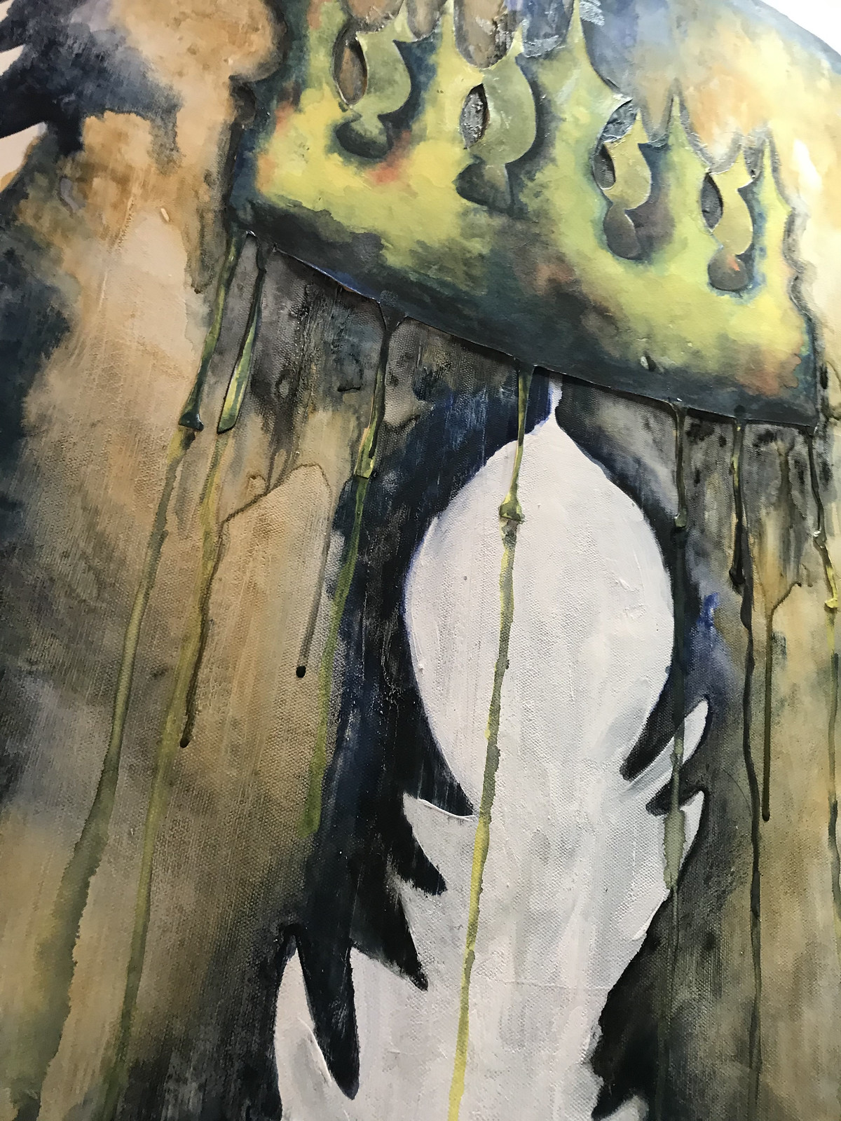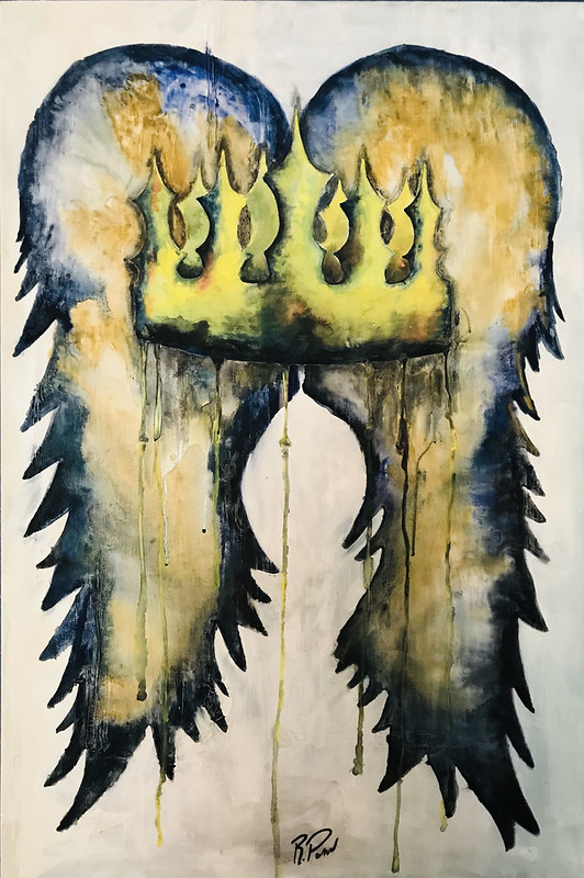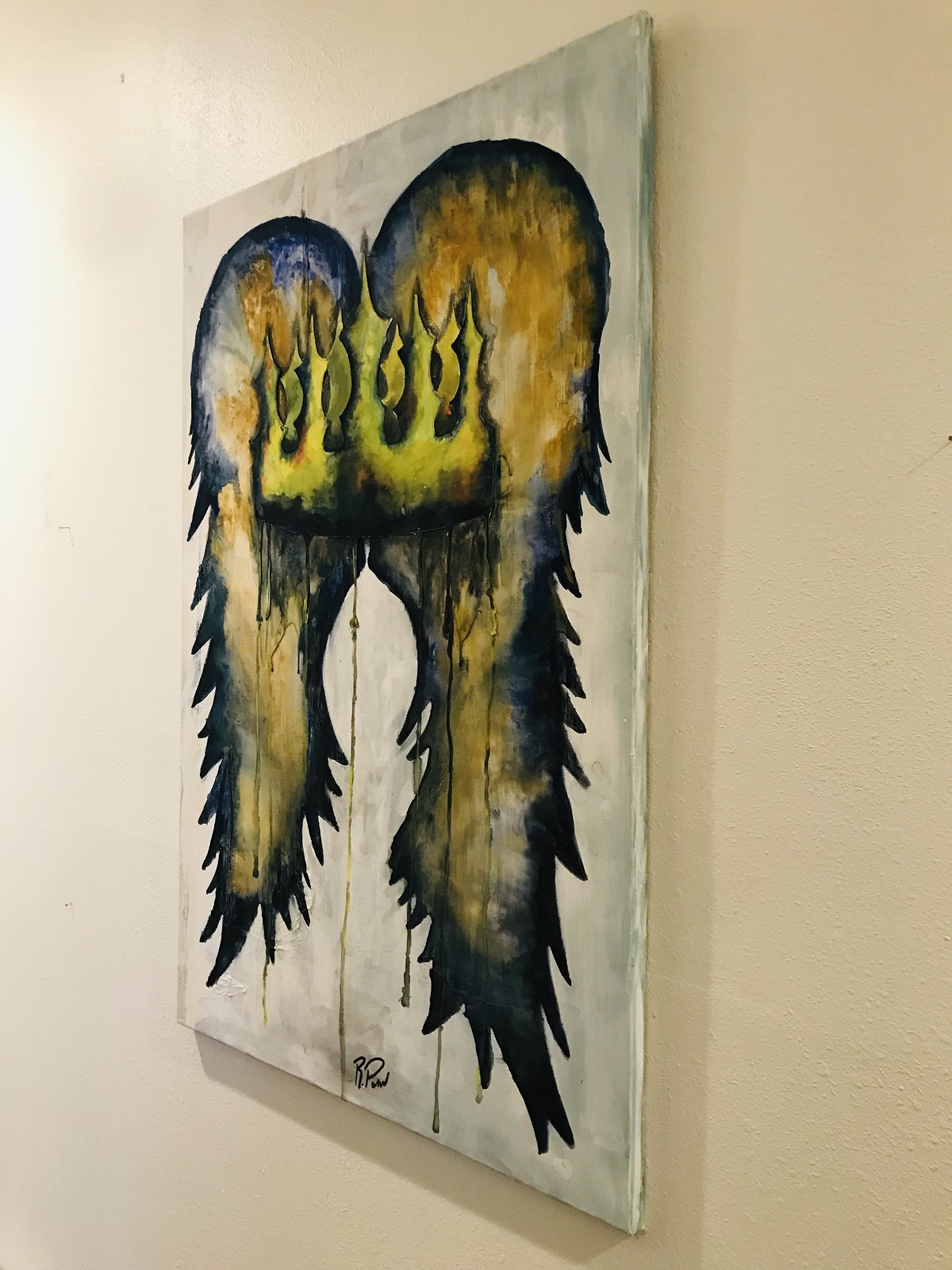 "CROWN + WINGS" WATERCOLOR 24 " x 36" Signed, Canvas Frame, Ships in a box ~~~~ New Orleans Residents select (pick up) in the shipping options