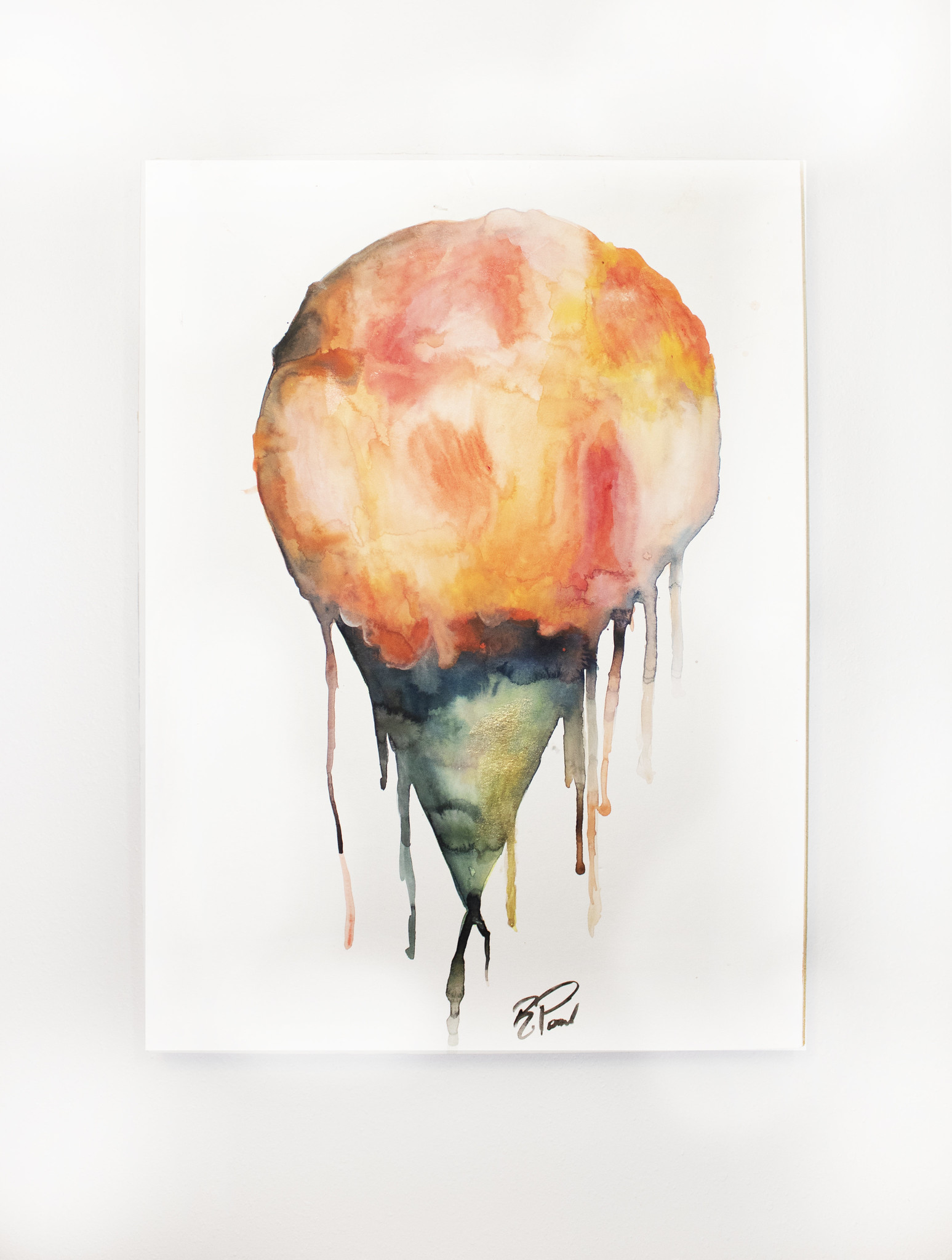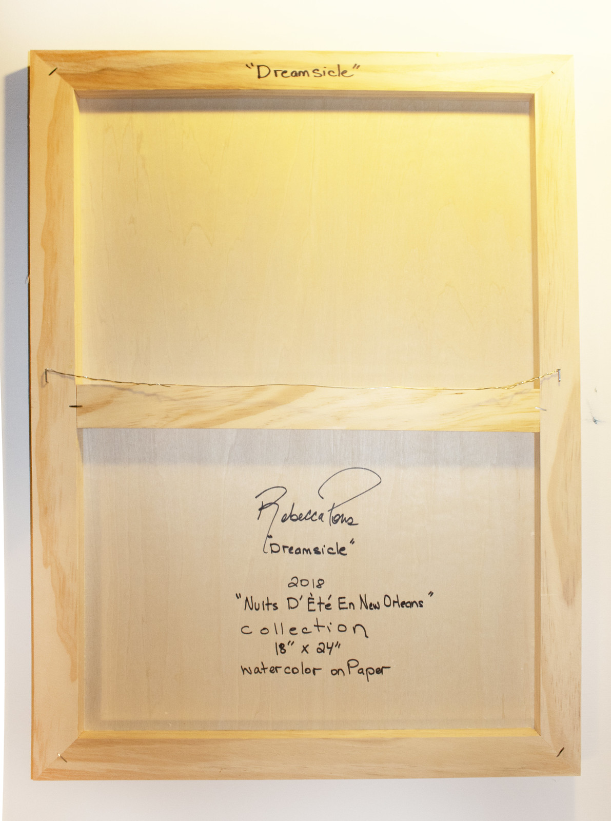 "DREAMSICLE SNOWBALL" Signed, Watercolor paper mounted on a 1/2" wood block panel, Ships in a box ~~~~ New Orleans Residents select (pick up) in the shipping options