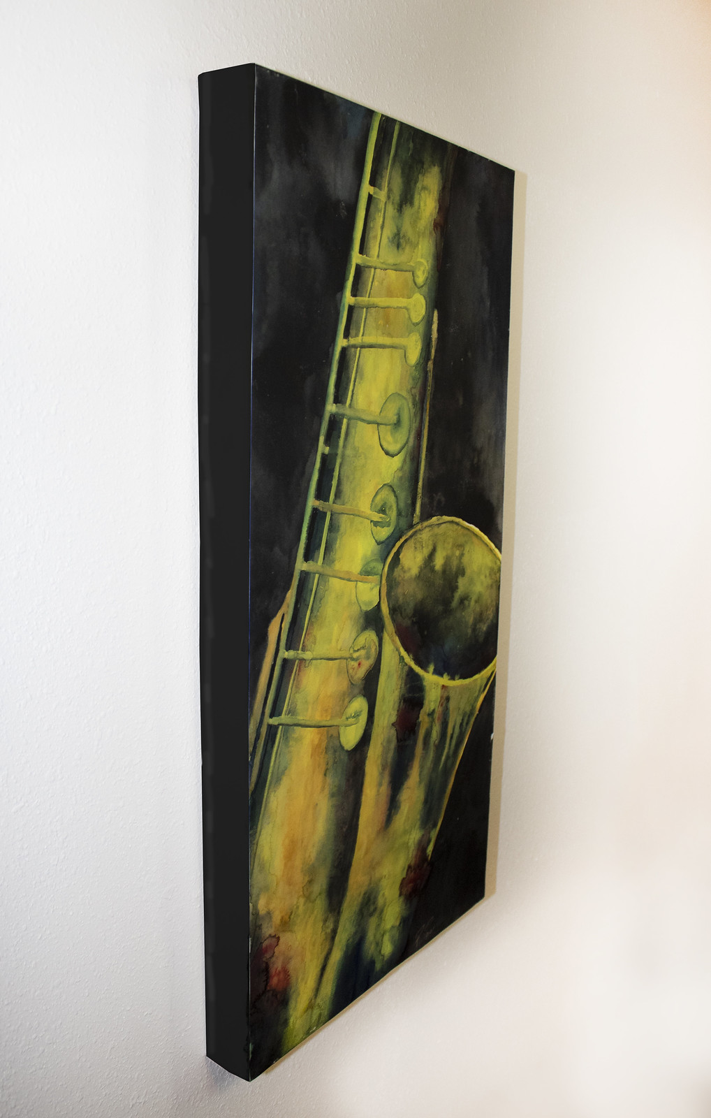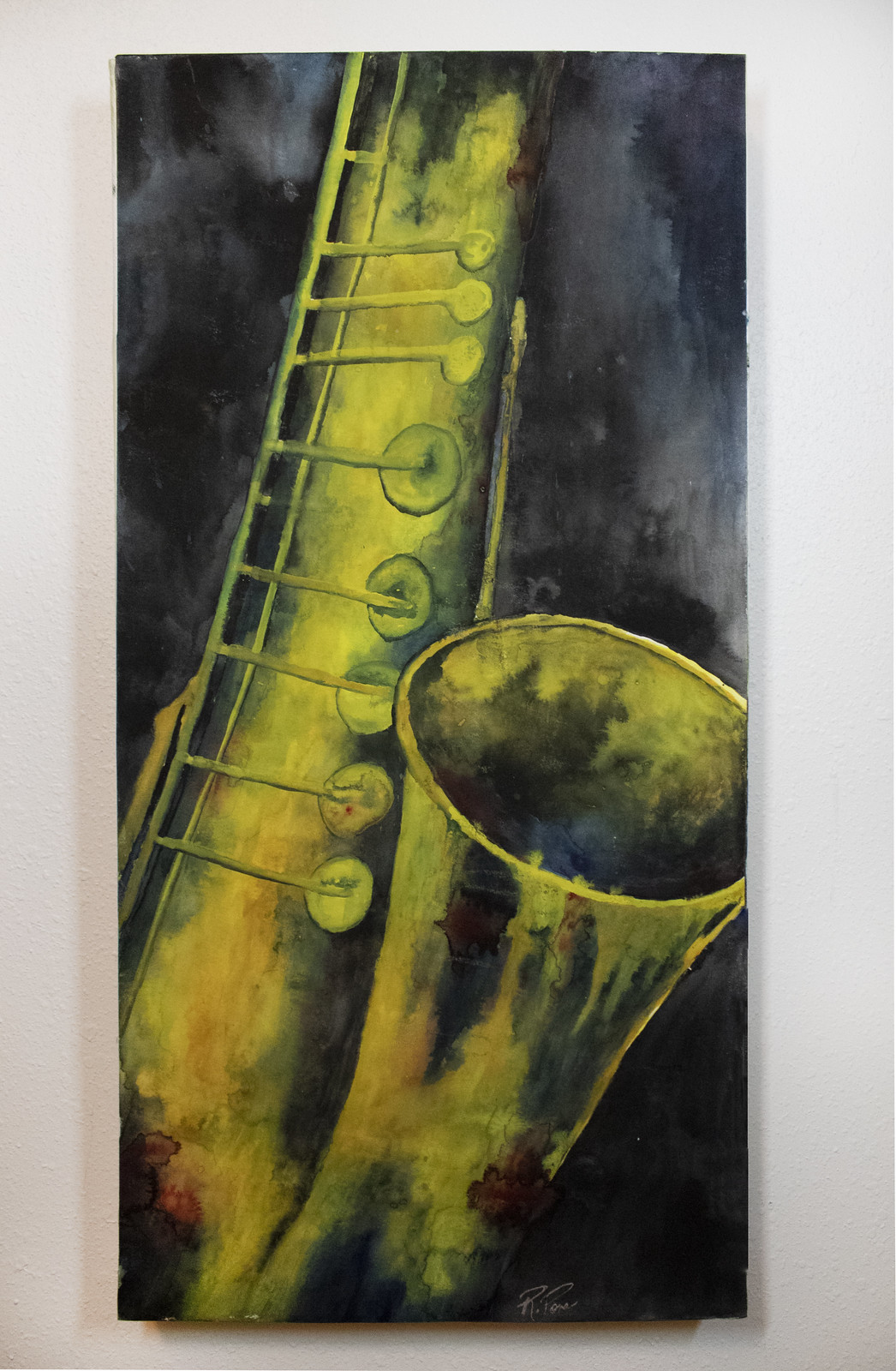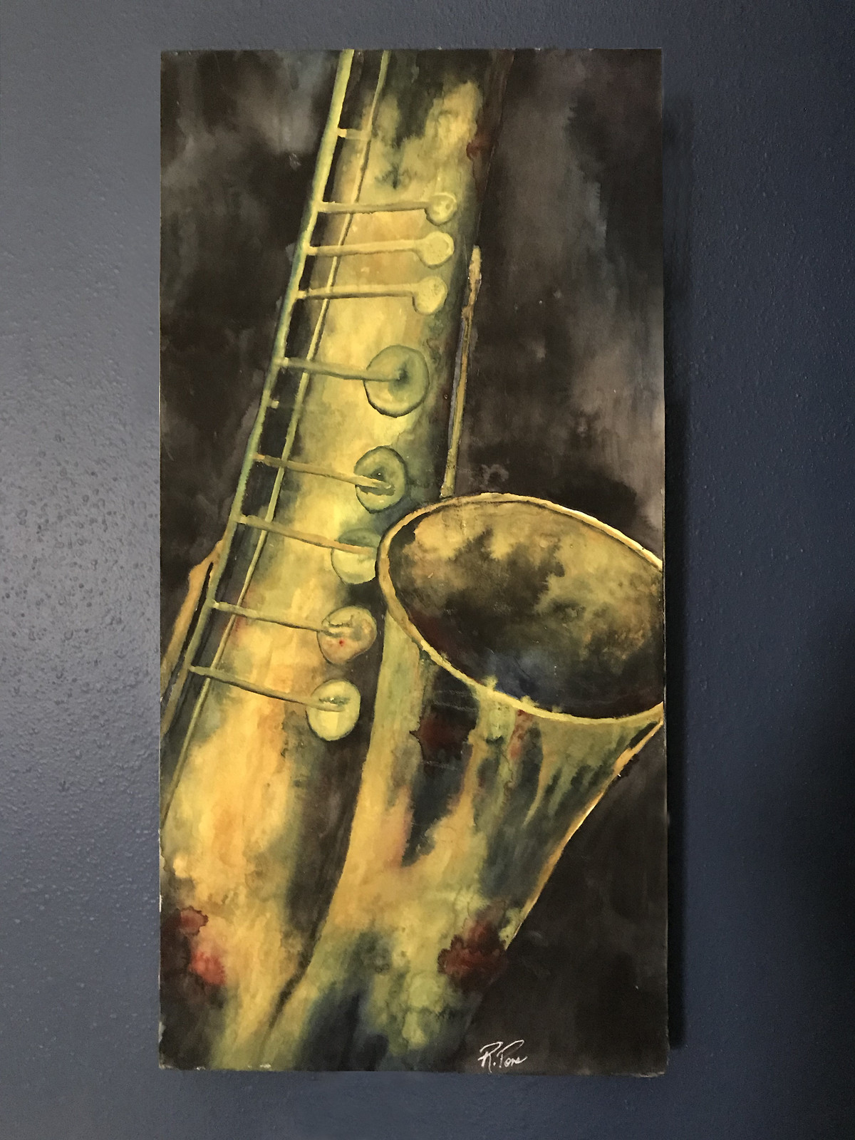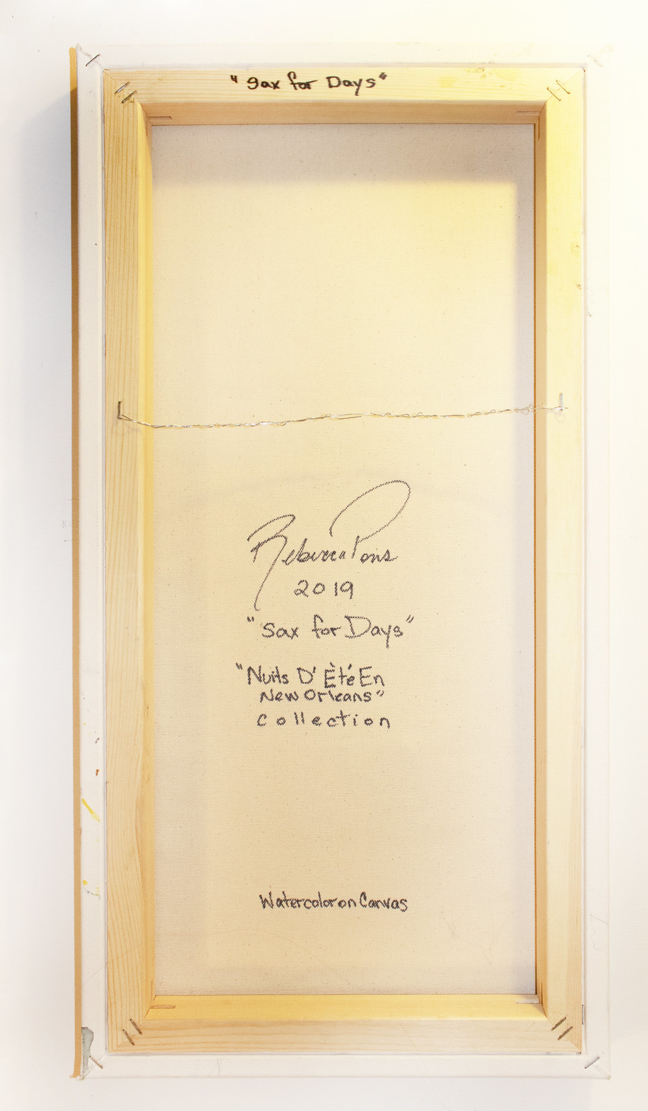 "SAX FOR DAYS" WATERCOLOR 12" x 24" Signed, Mounted on Wood Frame, Ships in a box ~~~~ New Orleans Residents select (pick up) in the shipping options