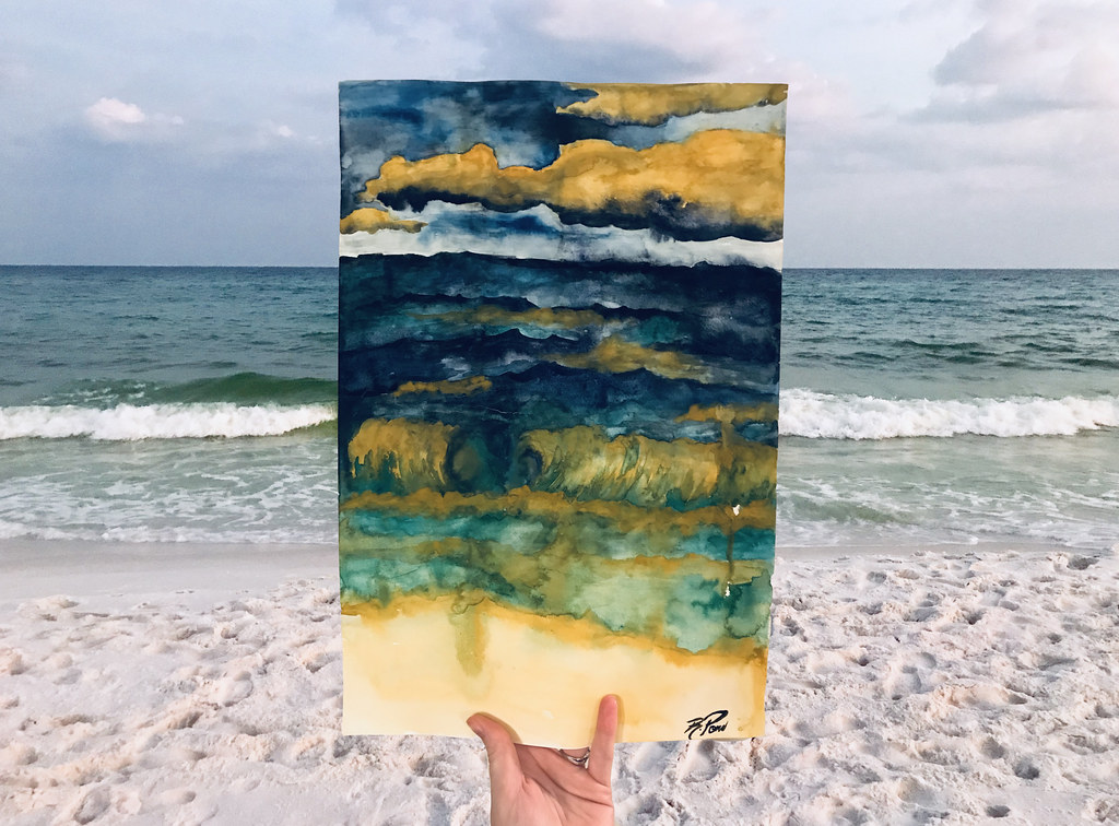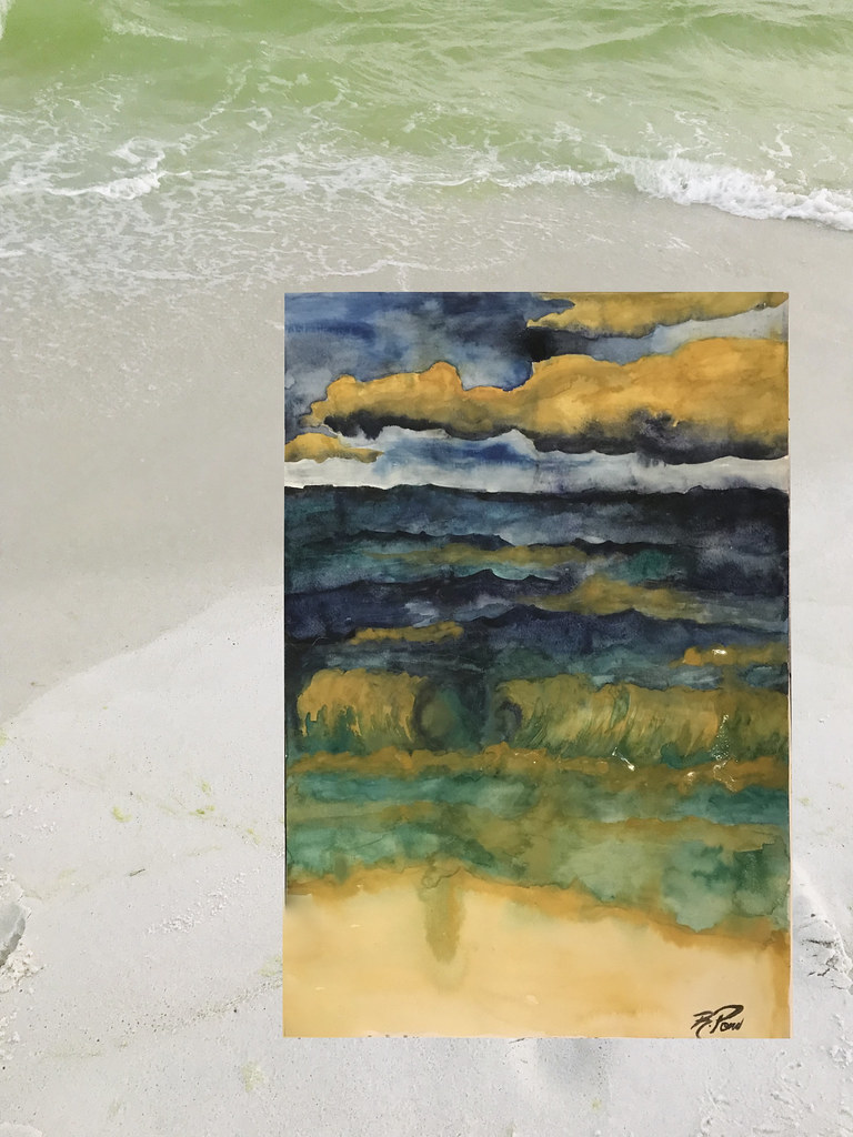 WATERCOLOR 12" x 18" Signed by artist Rebecca Pons. Painted in Ft. Walton Beach, Florida. Watercolor Paper Mounted on a Wood Panel Frame, Ships in a box ~~~~