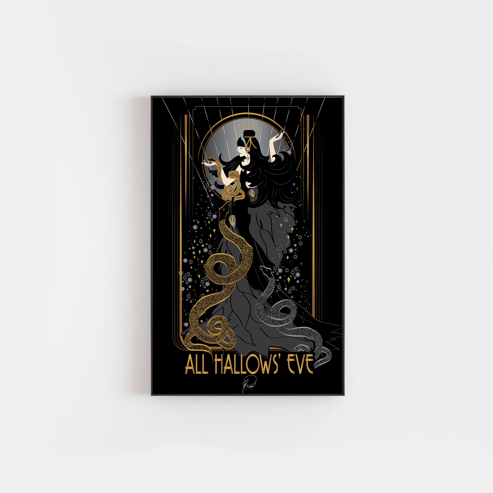 GICLEE PRINT with or without the word "ALL HALLOWS' EVE 2021" Signed by artist Rebecca Pons. Illustrated in New Orleans, Louisiana. Printed on Archival Paper, Ships in a tube ~~~~ New Orleans Residents select (pick up) in the shipping options