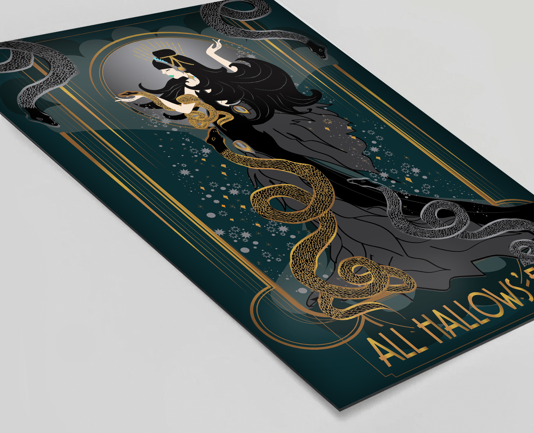 GICLEE PRINT with or without the word "AUTUMNAL EQUINOX" Signed by artist Rebecca Pons. Illustrated in New Orleans, Louisiana. Printed on Archival Paper, Ships in a tube ~~~~ New Orleans Residents select (pick up) in the shipping options