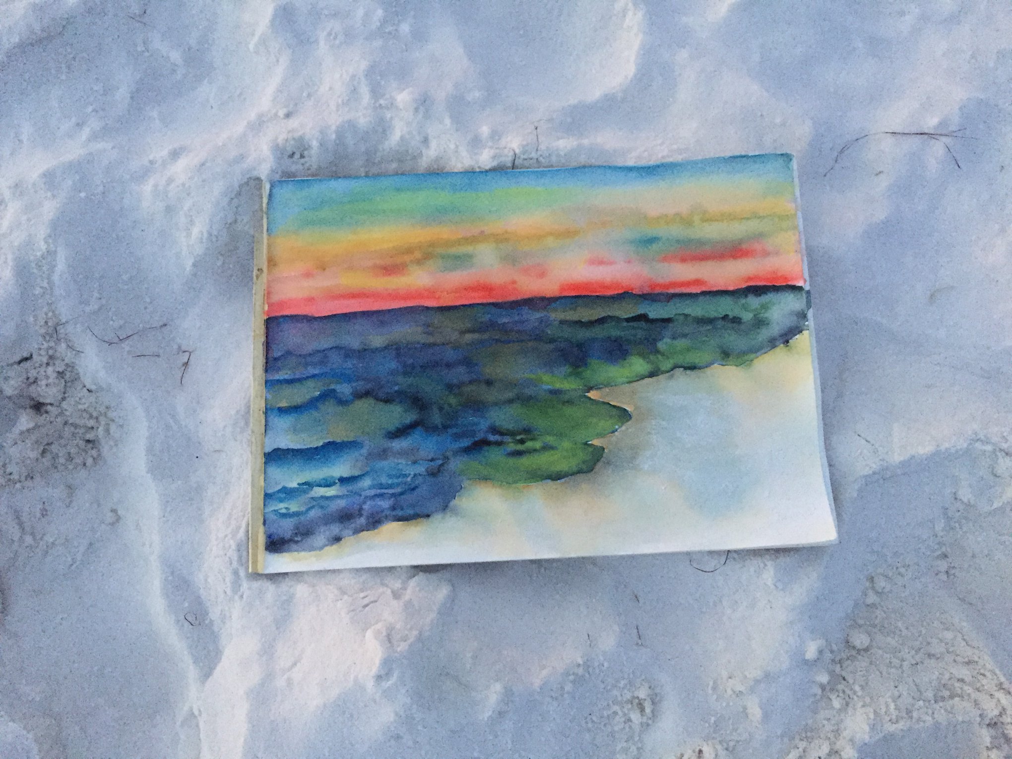 WATERCOLOR 12" x 18" Signed by artist Rebecca Pons Painted in Ft. Walton Beach, Florida. Watercolor Paper Mounted on a Wood Panel Frame, Ships in a tube ~~~~