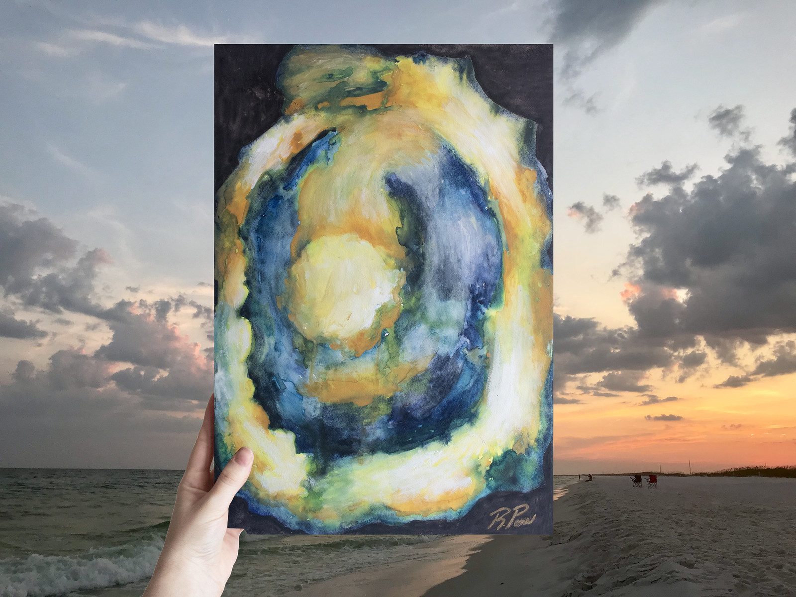 WATERCOLOR 12" x 18" Signed by artist Re. Painted in Ft. Walton Beach, Florida. Watercolor Paper Mounted on a Wood Panel Frame, ships in a tube ~~~~ New Orleans Residents select (pick up) in the shipping options