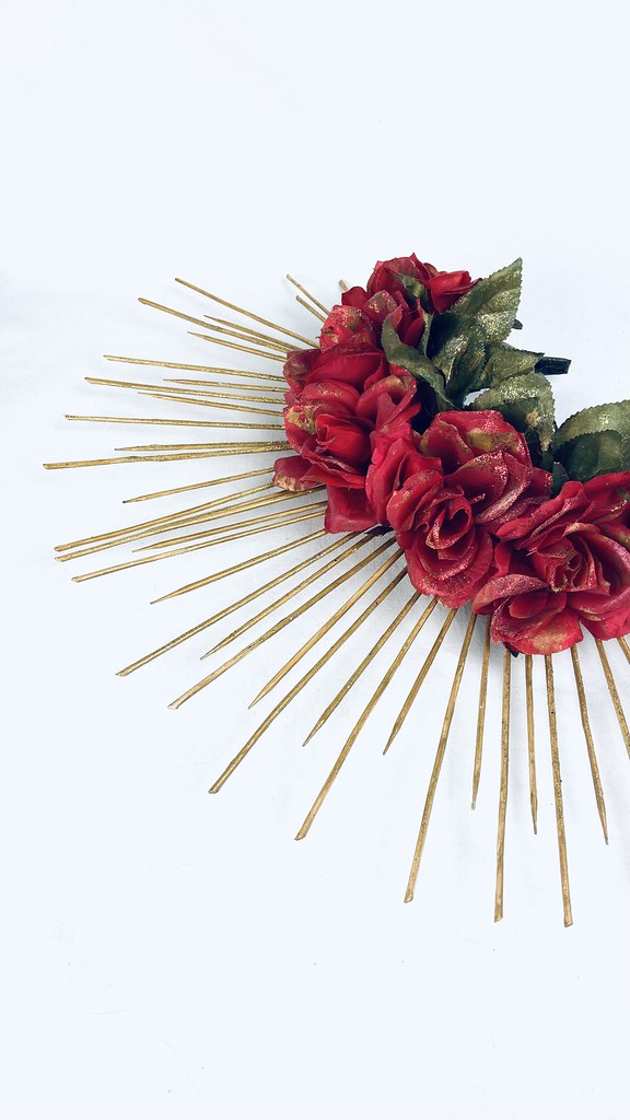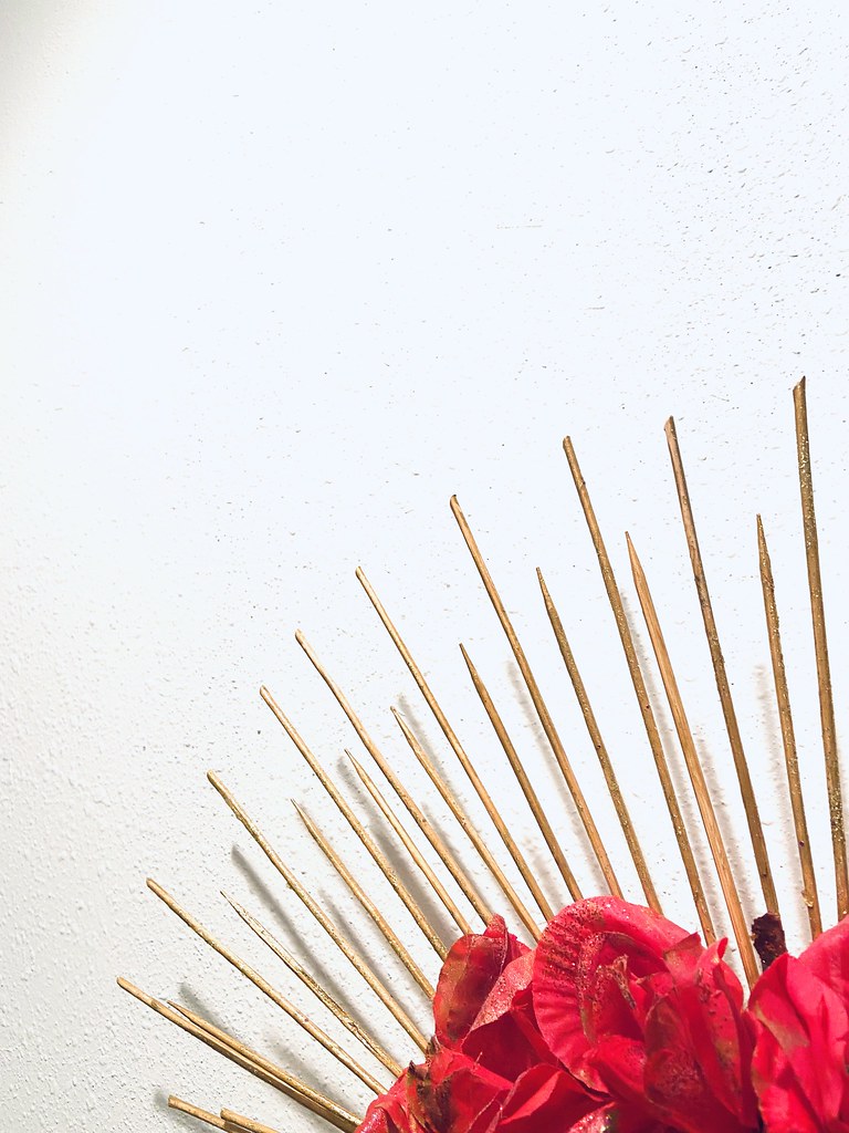 wooden sokes adorned with gold paint and gold glitter Sits comfortably on your head with a headband. Created by Rebecca Pons in New Orleans, LA New Orleans Residents select (pick up) in the shipping options Ships in a box ~~~~