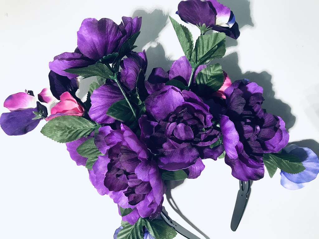 Beautiful Faux Flower Headpiece/Crown Made with a headband and Faux Flowers Perfect for Festivals, Weddings, Mardi Gras or just for fun