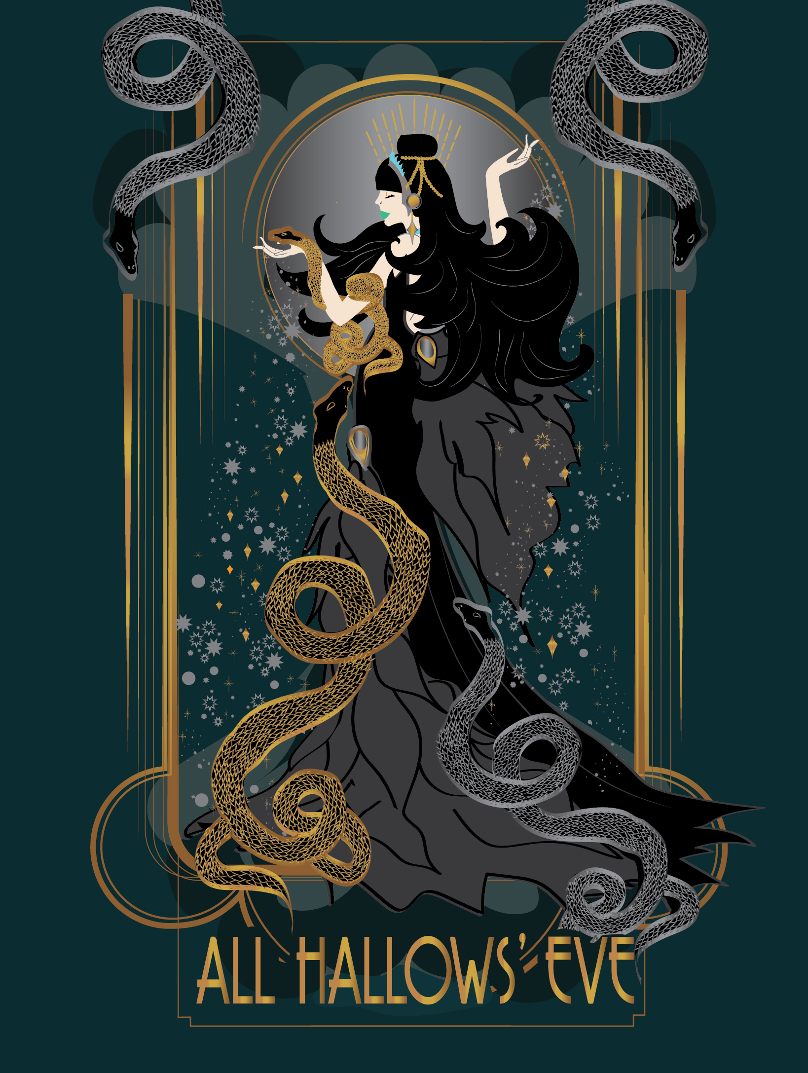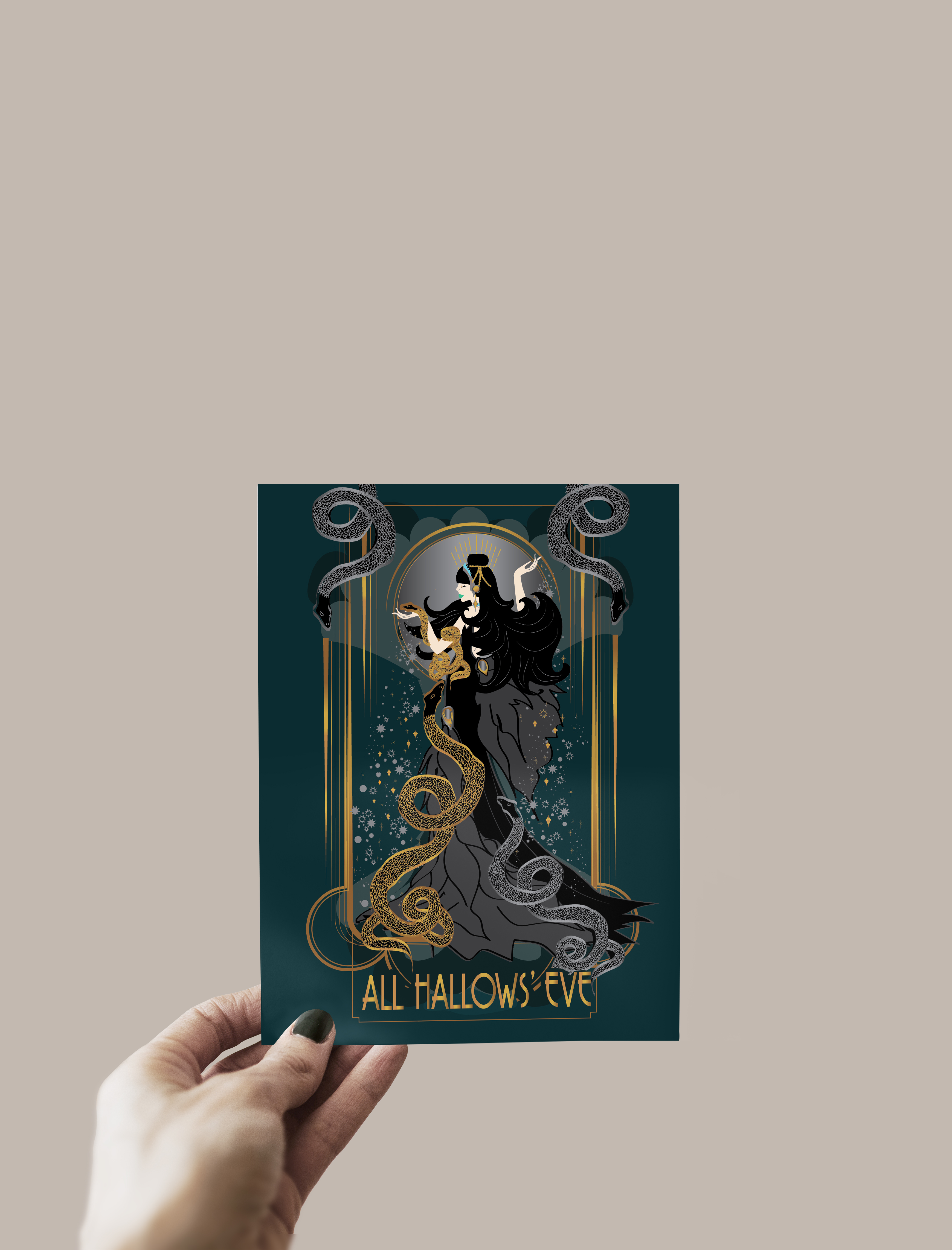 GICLEE PRINT CARD with or without the word "ALL HALLOWS' EVE 2022" Illustrated by artist Rebecca Pons in New Orleans, Louisiana. Printed on Archival Paper, Ships in an envelope ~~~~ New Orleans Residents select (pick up) in the shipping options