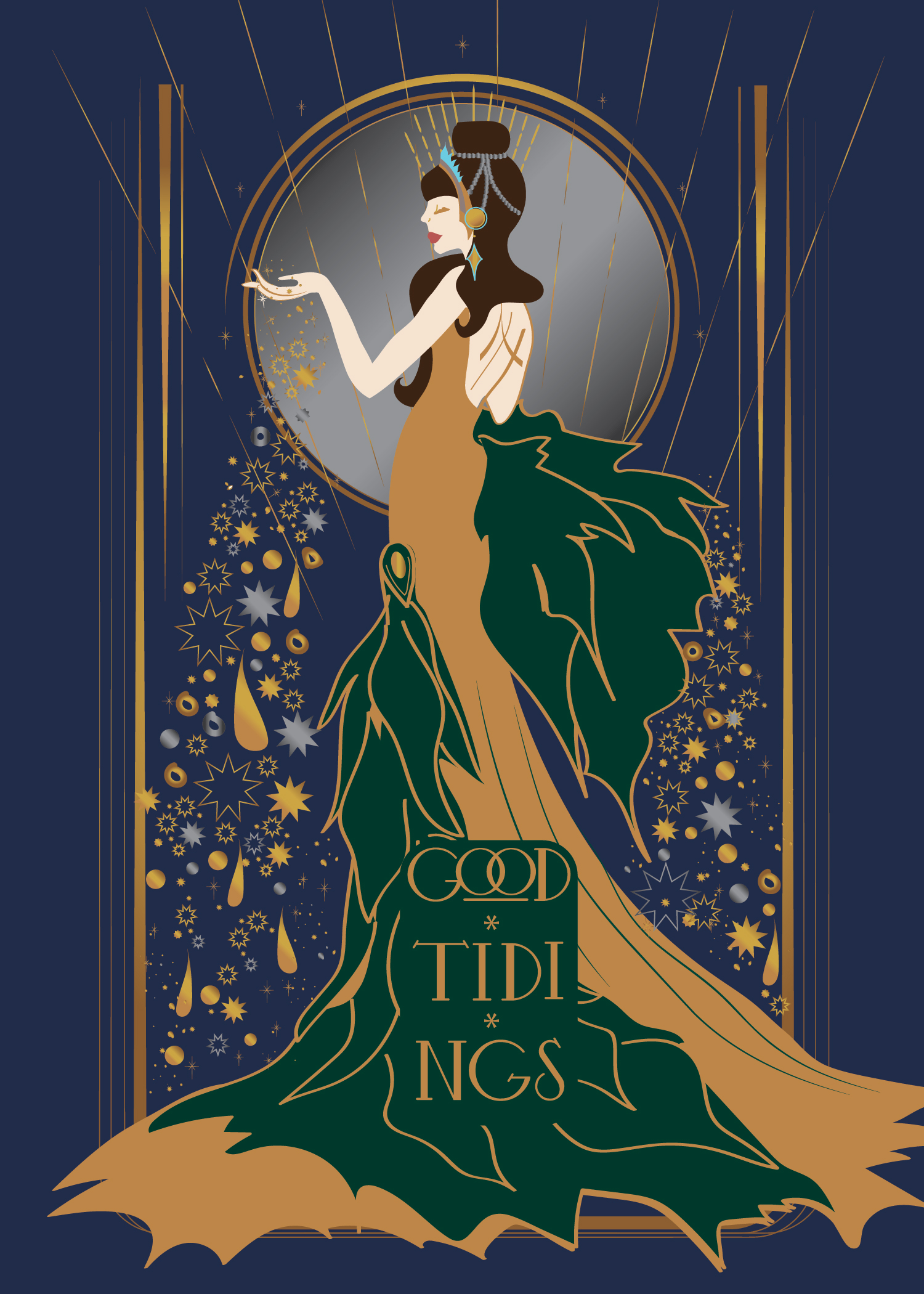 GICLEE PRINT CARD with or without the word "GOOD TIDINGS/WINTER SOLSTICE 2021" Illustrated by artist Rebecca Pons in New Orleans, Louisiana. Printed on Archival Paper, Ships in an envelope ~~~~ New Orleans Residents select (pick up) in the shipping options