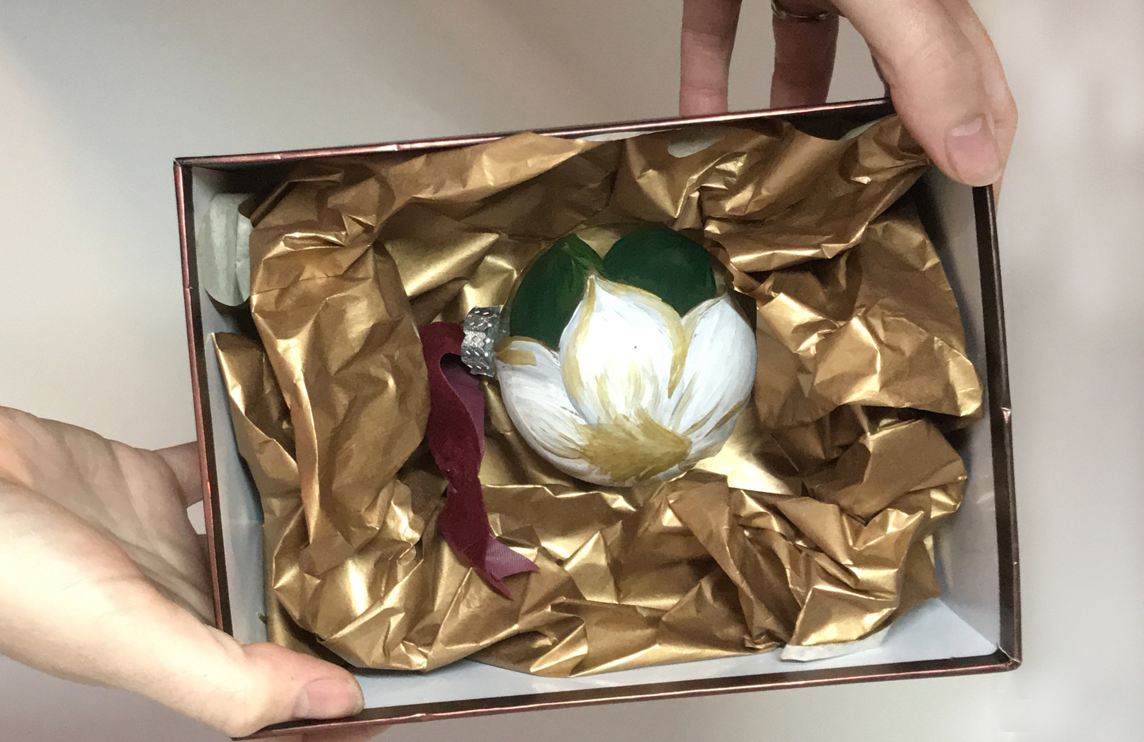 HAND PAINTED GLASS ORNAMENT $20.00